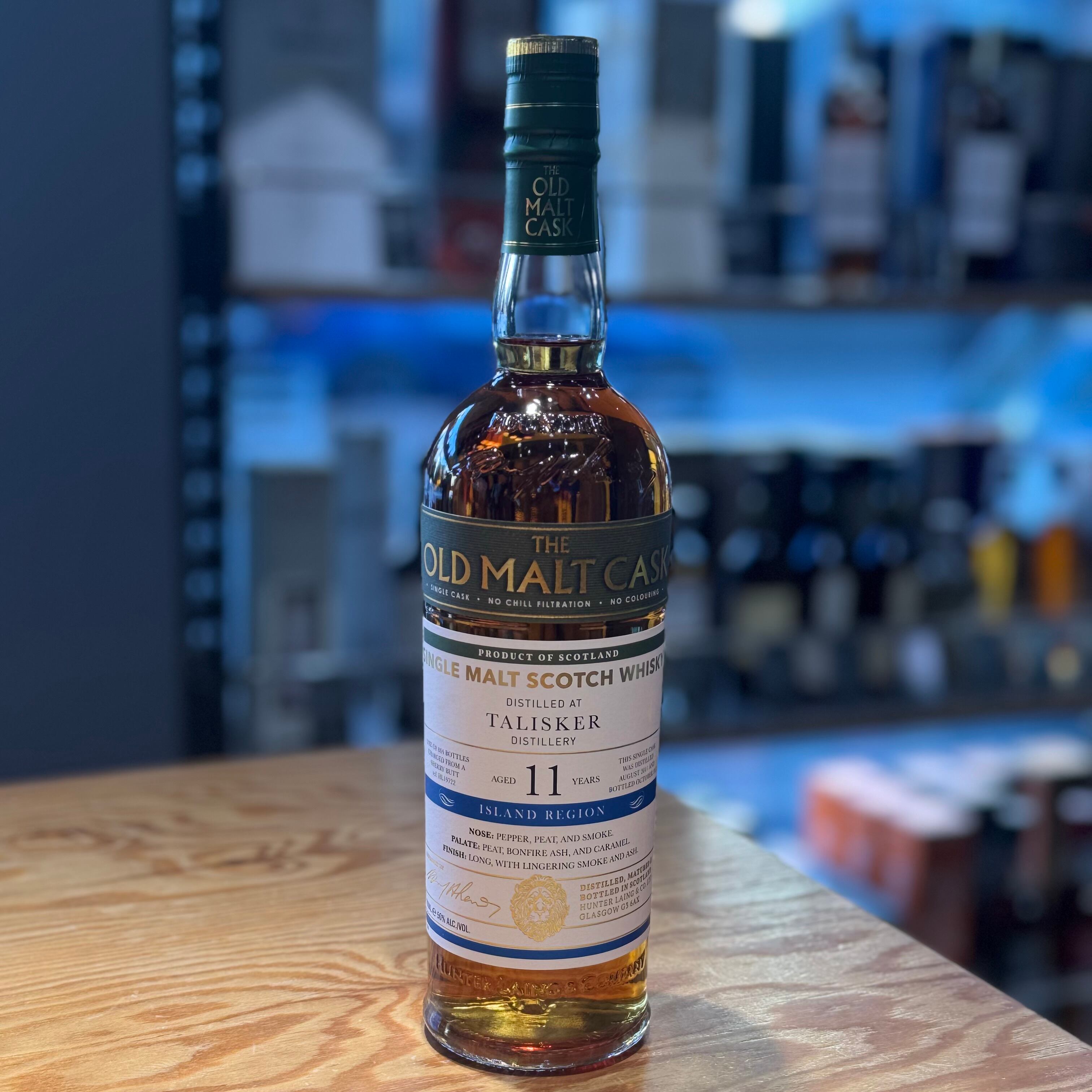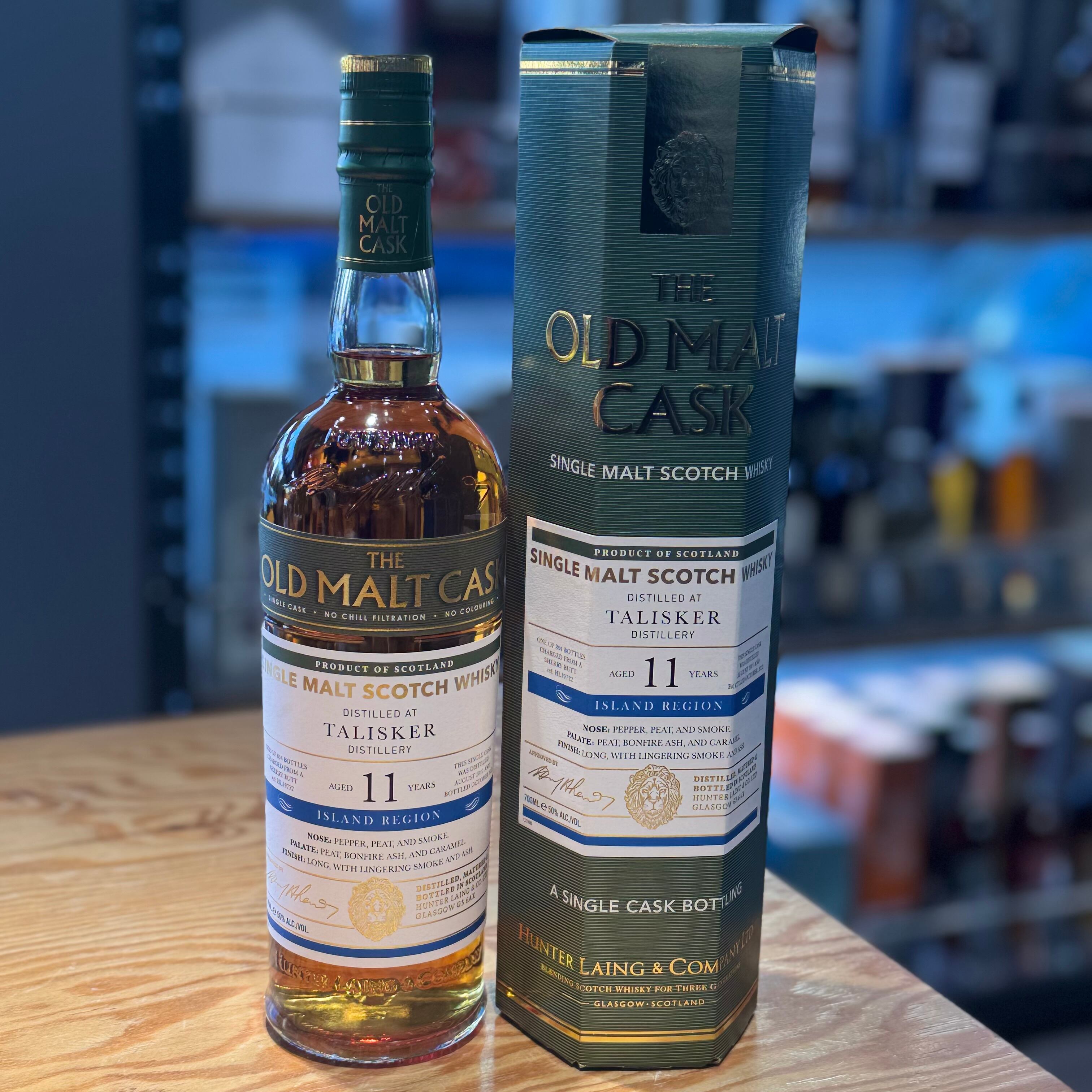 ハンターレイン社のフラッグシップシリーズ「オールド・モルト・カスク」の誕生20周年を記念してボトリングされたシェリー樽フィニッシュというユニークなタリスカーです。もちろんカスクで仕上げているので11年という熟成のタリスカーらしいパワフルでポテンシャル溢れる強力な味わいが楽しめます。
